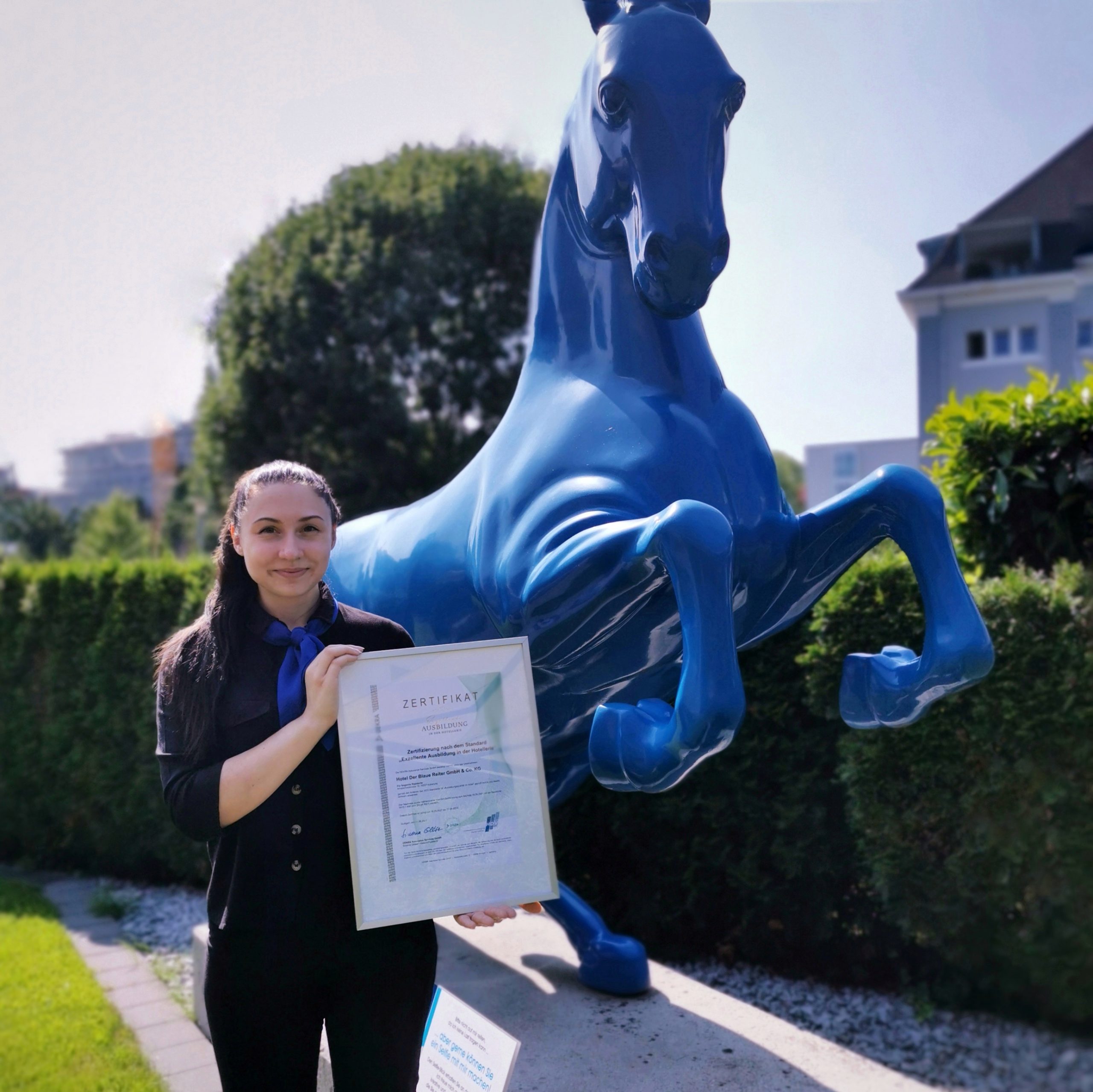 „Auf diese Auszeichnung sind wir ganz besonders stolz“, so Hotel Der Blaue Reiter-Geschäftsleiter Marcus Fränkle, „schließlich ist es wichtiger denn je, gute Fachkräfte im Betrieb zu haben und dazu gehört eine bestmögliche Ausbildung. Dass wir von einer unabhängigen Prüfstelle ein solches Ergebnis erreichen, ist einfach fantastisch!“. Im Blauen Reiter widmet man deshalb nicht nur den Gästen, sondern auch dem Thema Ausbildung seit Jahren größtmögliche Aufmerksamkeit.