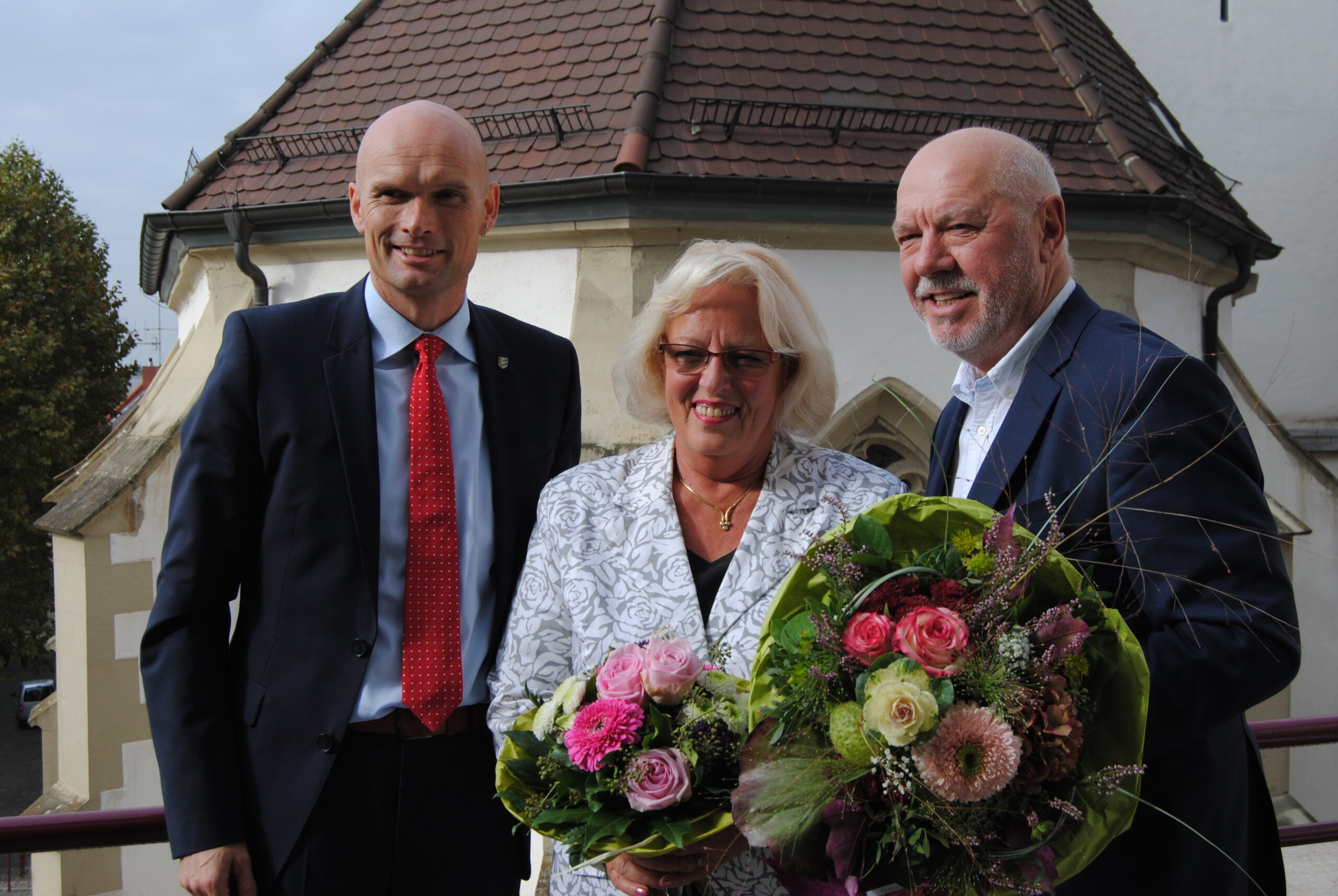 Wiesloch, 26. Oktober 2016. Zum Ende des Monats verlässt Brigitte Heger-Höfling nach 25 Dienstjahren das Palatin, um in den wohlverdienten Ruhestand zu gehen. Oberbürgermeister Dirk Elkemann und Palatin-Direktor Klaus Michael Schindlmeier verabschiedeten sie am 26. Oktober feierlich im Wieslocher Rathaus und dankten ihr für ihre Treue und ihr unermüdliches Engagement. Sie hat das Haus von Anfang an mit großer Herzlichkeit begleitet und war für das Gelingen unzähliger Veranstaltungen verantwortlich.
