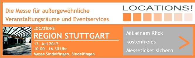 Die LOCATIONS Region Stuttgart wurde 2011 im Neckar-Forum in Esslingen ins Leben gerufen. 2017 wird die LOCATIONS allerdings nicht mehr im Neckar Forum in Esslingen, sondern in der Messe Sindelfingen stattfinden. Mit dem Standortwechsel reagiert die Veranstalterin auf das kontinuierliche Wachstum der LOCATIONS in den zurückliegenden Jahren. Der Umzug eröffnet der LOCATIONS Region Stuttgart und ihren Ausstellern mit einer größeren Hallenkapazität neue Perspektiven. Wer für ausgefallene Tagungen und Veranstaltungen, zwischen Heidenheim, Balingen, Pforzheim und Tauberbischofsheim, den passenden Rahmen sucht, ist auf der LOCATIONS Region Stuttgart genau richtig. Ob Kongress, Tagung, Mitarbeiterevent, Produktpräsentation, Kundenveranstaltung oder Weihnachtsfeier – hier finden Veranstaltungsplaner für jeden Anlass die passende Location! Feiern im Museum, tagen im Schloss oder eine Galaveranstaltung im Stadion – den Ideen sind keine Grenzen gesetzt. Und jedes Jahr wächst die Messe und bietet immer wieder zahlreiche neue Tagungs- und Eventmöglichkeiten, darunter auch manche Neuheiten und Geheimtipps.