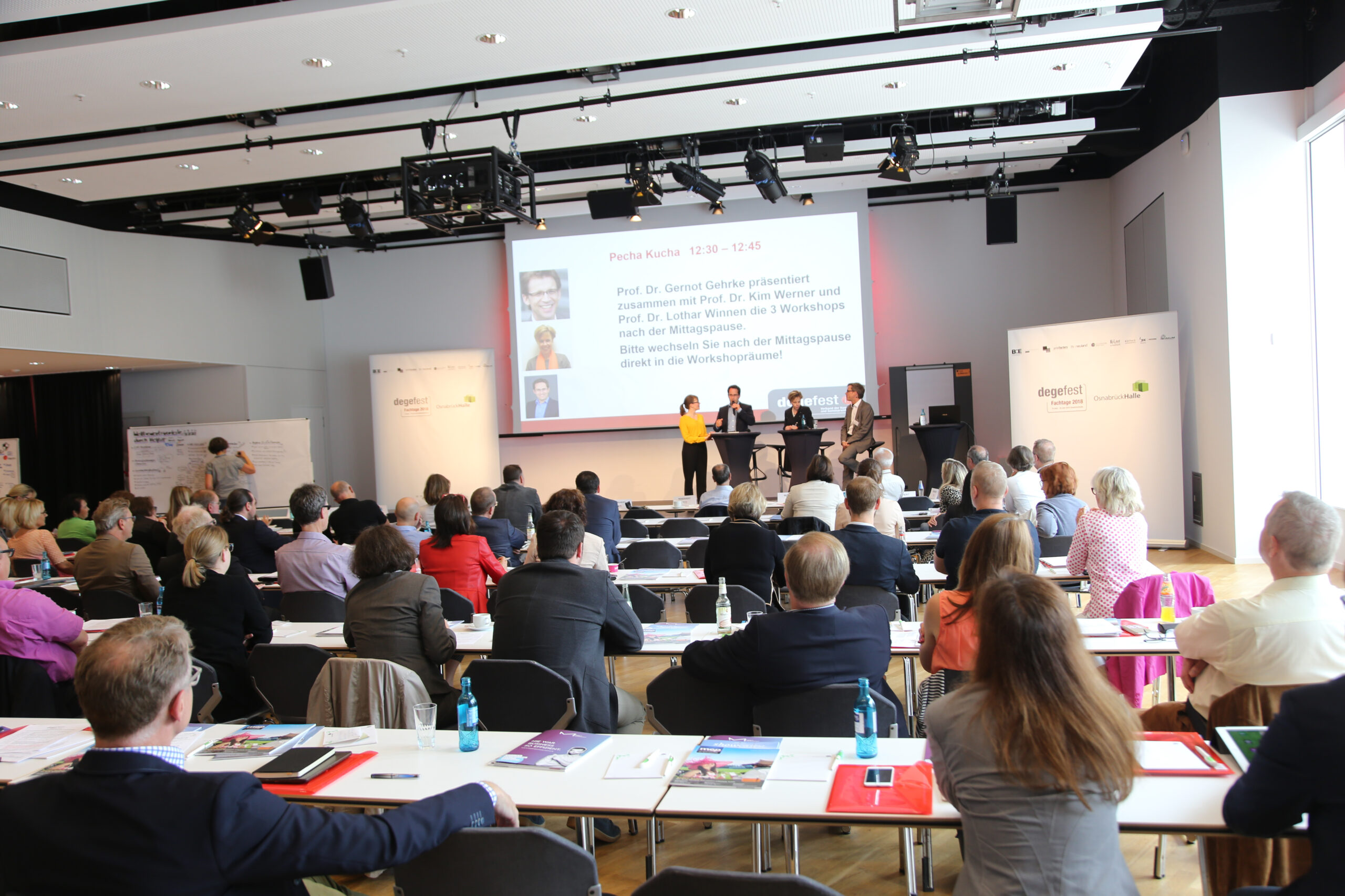 Unter dem Titel Trends erkennen – Zukunft gestalten! rückten die diesjährigen degefest-Fachtage am 15. Juni in Osnabrück aktuelle Branchentrends und ihr Gestaltungspotenzial in den Mittelpunkt. Knapp 100 Teilnehmende beschäftigten sich mit Themen wie Big Data, DSGVO, Diversität, Social Media, Wissensmanagement und Aus- und Weiterbildung.