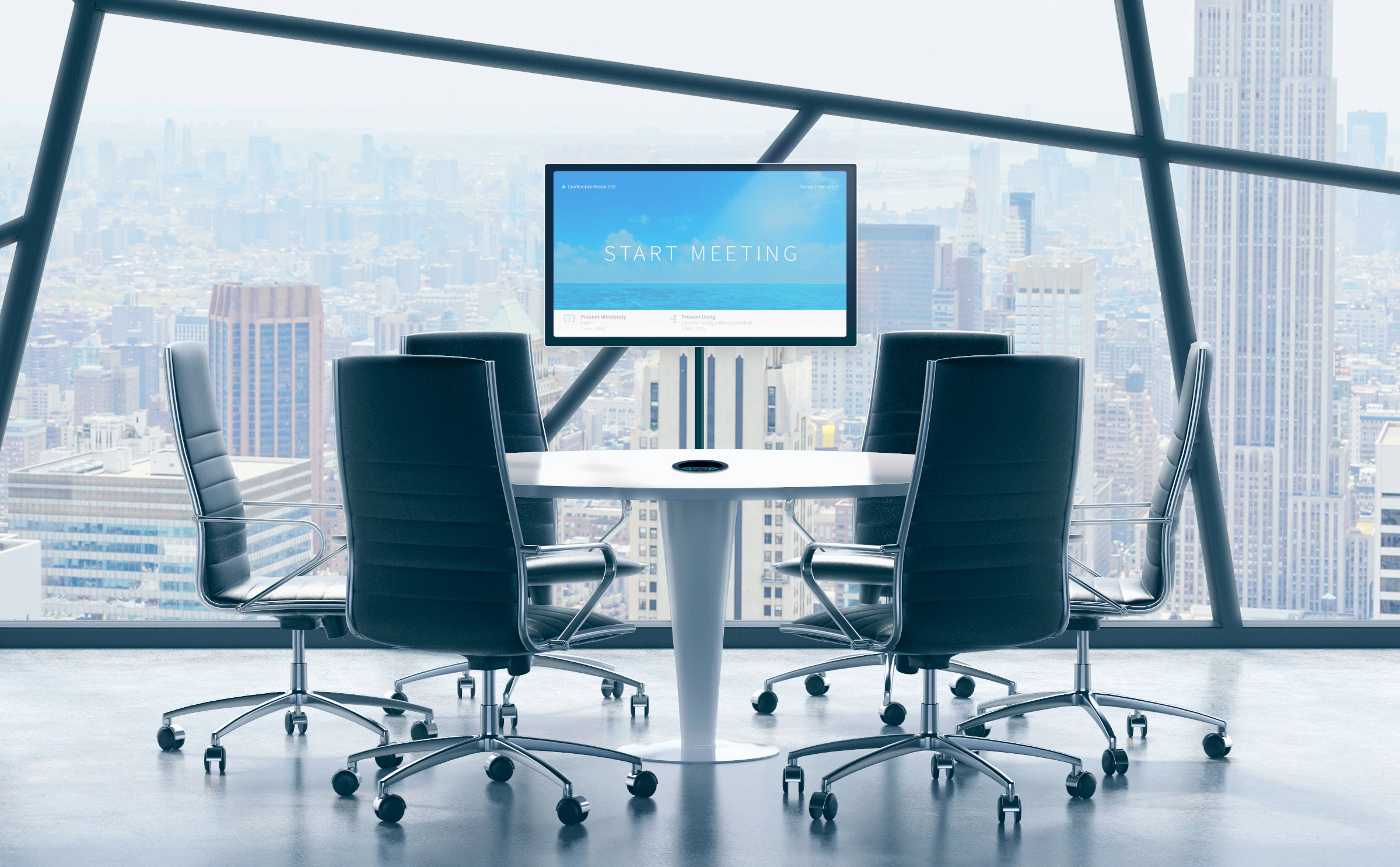 Mit der DM-DGE-200-C lassen sich schöne veranstalterspezifische Begrüßungsbildschirme mit benutzerdefinierten Grafiken und Logos sowie einfache Informationen zu den Anschlussmöglichkeiten generieren. Durch die Verwendung des Bewegungssensors einer USB-Kamera, zum Beispiel der Crestron CCS-CAM-USB-F-100-SHROUD wird automatisch das Raumdisplay eingeschaltet, wenn die erste Person den Raum betritt, sodass die Teilnehmer sofort mit einer professionellen Bildschirmanzeige und intuitiven Anweisungen für einen schnellen und einfachen Start des Meetings begrüßt werden.