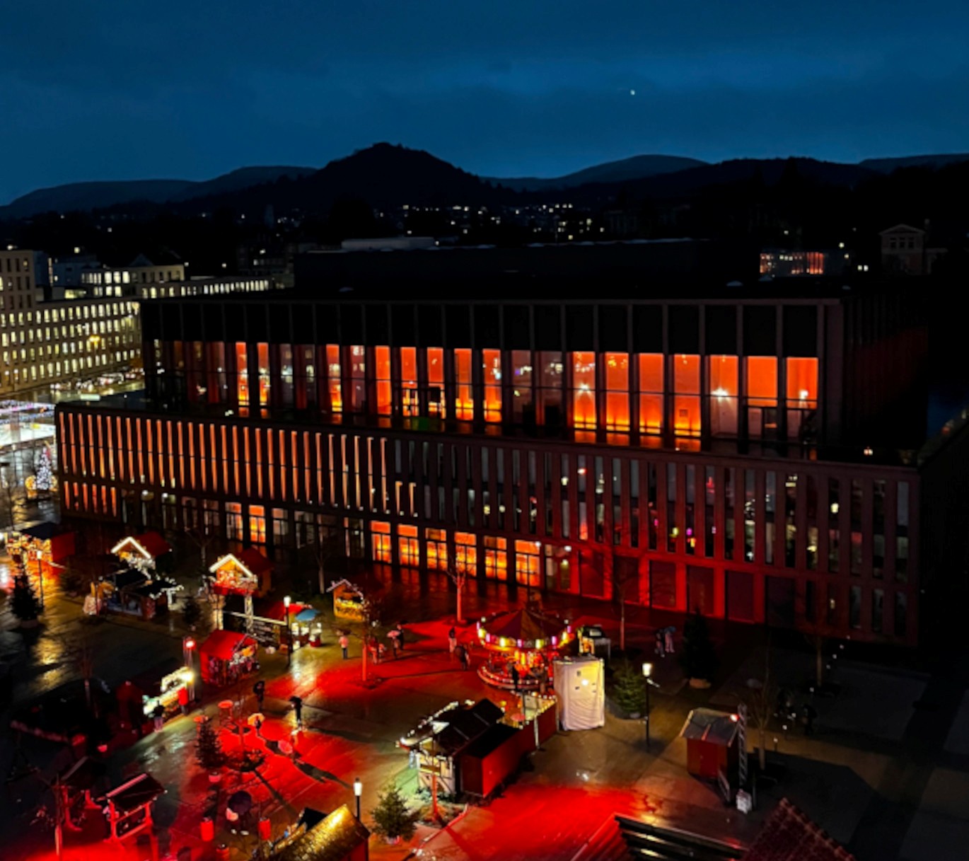 Stimmungsvoll und immer einen Besuch wert – die Stadthalle Reutlingen bietet in der Adventszeit ums Haus und natürlich im Veranstaltungskalender einiges für Augen, Ohren und Herz. (Bild: Stadthalle Reutlingen GmbH)