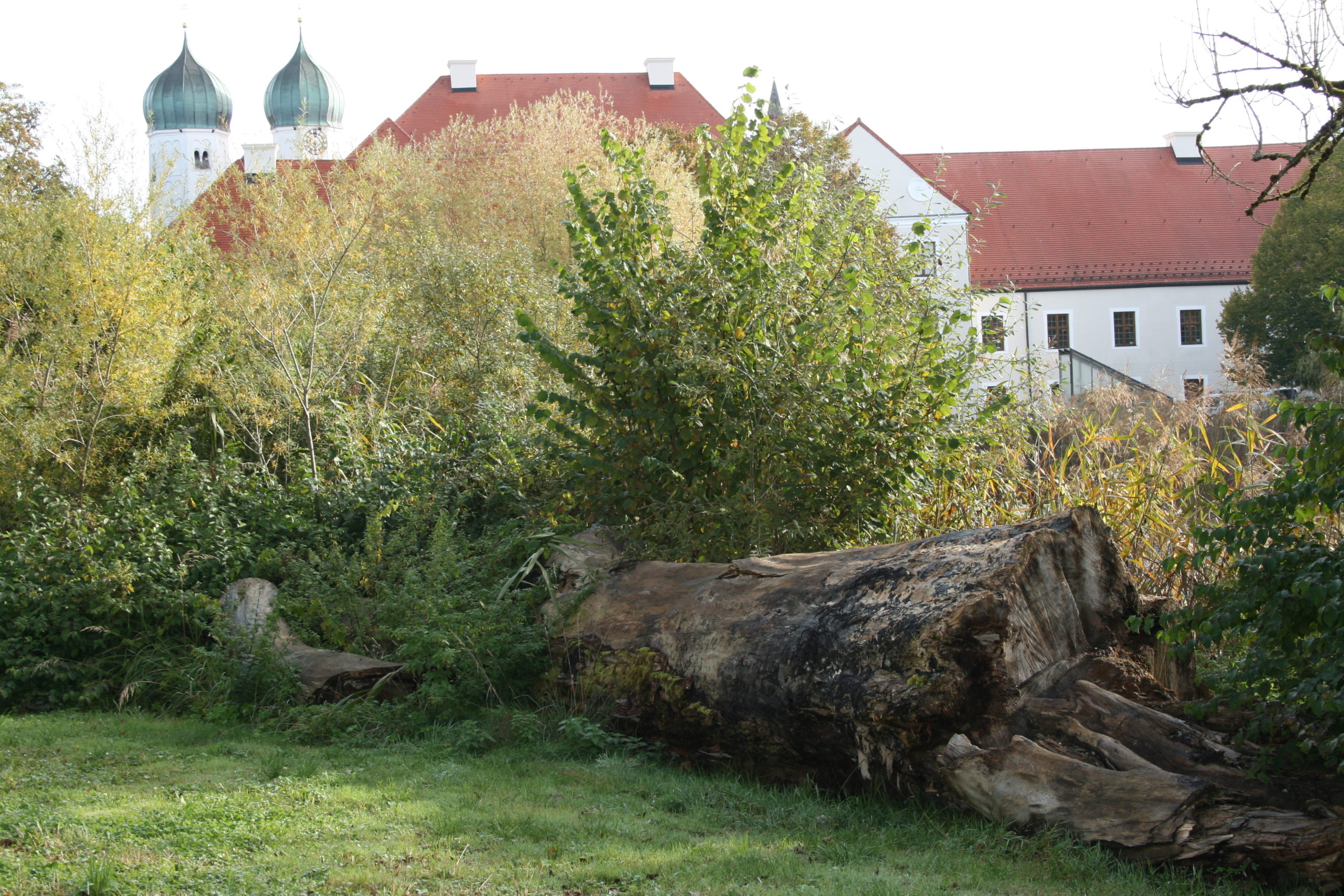 Gefällt werden musste leider auch einer der ältesten Bäume, von dem allerdings nur mehr ein Gerippe zu sehen war. Doch er bleibt auf dem Gelände. „Wir haben ihn auf eine Wiese am Kloster gelegt“, so Schölzel. „Jetzt wird daraus ein Mini-Biotop. In dem Totholzbaum werden Käfer und andere Insekten ihre Heimat finden. Auch das war uns bei der Erneuerung der Außenanlagen wichtig.“
