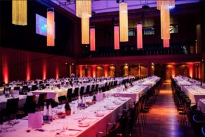 … und bietet als erste in Deutschland CO2-neutrale Events! Die exzellente „Green Globe“-Zertifizierung und Engagements wie bei fairpflichtet zeigen die Nachhaltigkeit ebenso wie die hauseigene E-Tankstelle. Mitten im Bürgerpark an der renaturierten Echaz gelegen vitalisiert das Haus die Tagungsszenerie im Süden Stuttgarts mit dem Großen Saal für bis zu 1.900 Gäste (inkl. fahrbarem Saalboden), dessen Akustik bei Konzert UND Sprache überzeugt. Der größenvariable Kleine Saal bietet fahrbare Bühnenpodeste und modernste Tagungstechnik. Weitere 14 tageslichtdurchflutete und klimatisierte Veranstaltungsräume sowie Foyers ergänzen das Raumportfolio für Kongresse, Meetings, Bankette oder Musik, Get-together-Situationen und Feste, auch auf der umlaufenden Terrasse. Die 10-GBit-Bandbreite der Glasfaseranbindung sorgt für Highspeed Online Conferencing und Live Streaming – kostenfreies WLAN ist selbstverständlich. Komplettpakete von Anreise bis Rahmenprogramm werden ebenfalls organisiert.