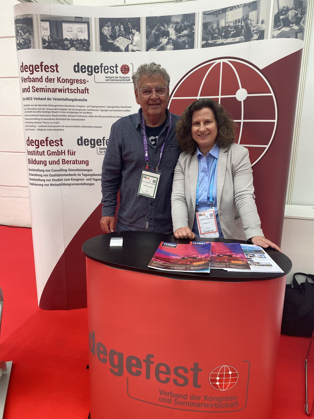 Auch der degefest war an allen 3 Messetagen wiederholt mit einem eigenen Ausstellungsstand als Kooperationspartner der IMEX präsent und konnte über aktuelle Verbandsentwicklungen informieren. Der degefest-Messestand war somit auch in diesem Jahr wieder Treffpunkt für alle degefest-Mitglieder und Interessenten, die sich über die Verbandsarbeit informieren möchten. Besucht haben uns u.a. Prof. Stefan Luppold aus dem Wissenschaftlichen Beirat, Kristian Straub von Lufthansa Seeheim, degefest-Alumni Georg Sommer, Pia Kumpann vom Convention Büro Karlsruhe & Region, Jan von Schaper vom Dekra Congresshotel Wart, Stefanie Harsch und Tobias Lienhard von Momentus Technologies und Daniel Schuch vom Congress Centrum Pforzheim!