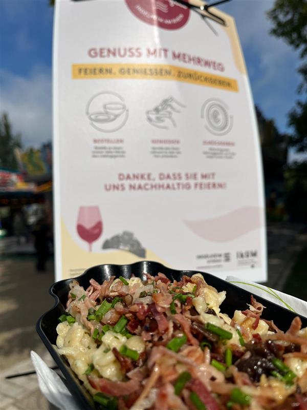 Ein weiterer positiver Effekt des Pfandsystems ist die Schonung wertvoller Ressourcen. Die Besucherinnen und Besucher genossen ihre Speisen aus Tellern und Schalen, die nach Gebrauch zurückgegeben, gespült und anschließend wieder in den Wertstoffkreislauf zurückgeführt wurden.